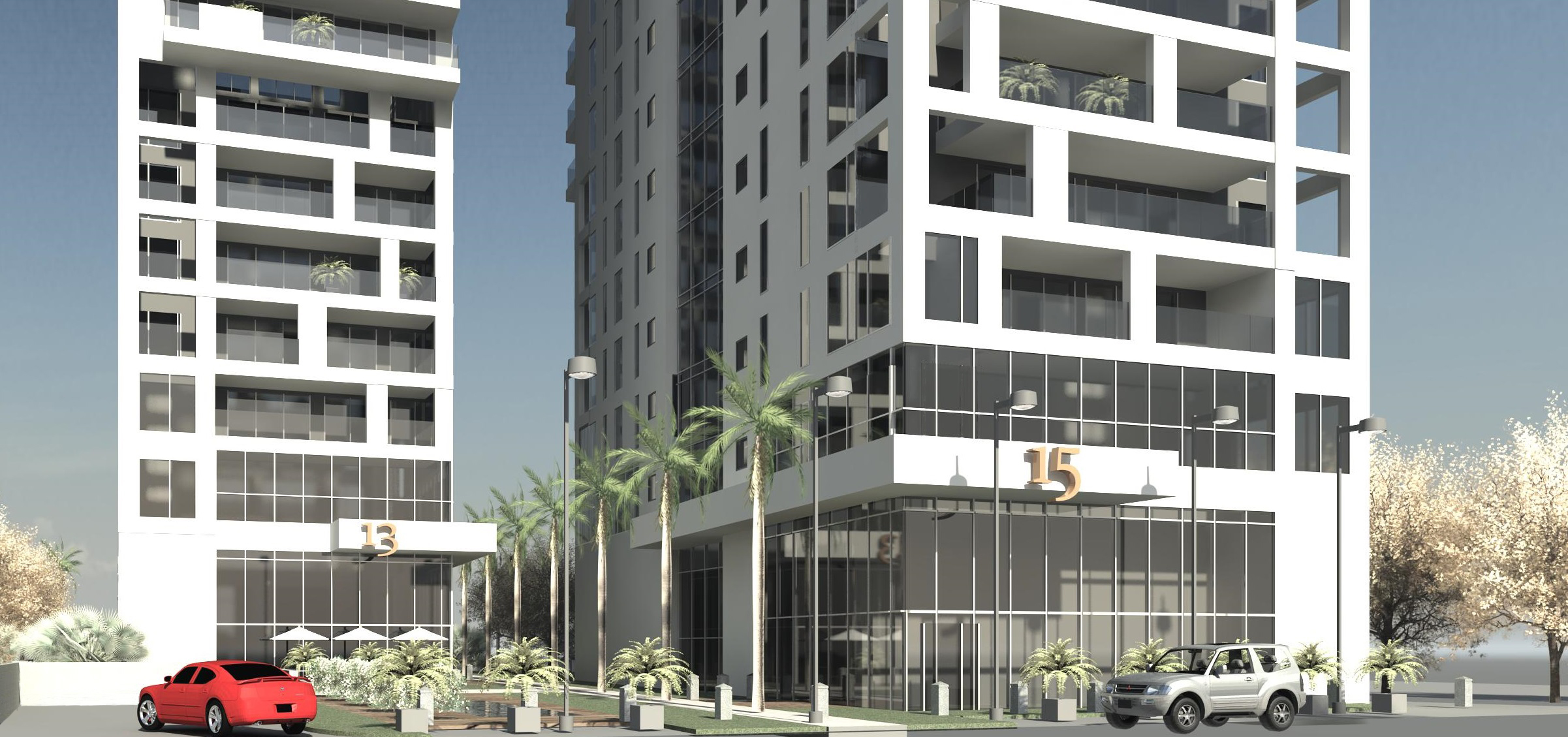✅ תכנון High-Rise חכם – מעטפת אלומיניום-אבן עמידה לרוח ים, מודל BIM מלא לצמצום סטיות ו-Prefabrication של חדרי רחצה וחזיתות.